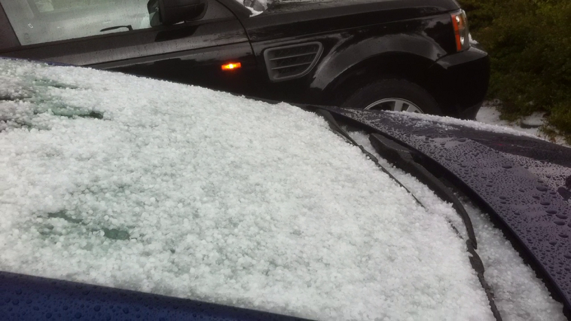 I had a lot of plans this weekend to ride during several ?May is Bike Month? events but the rain and hail storms kept me grounded. Here is a picture of the hail covering my car.