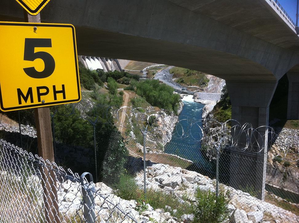 This last weekend I went on a bike ride up the American River Parkway Bike Trail up to Folsom Lake. It was a quite an experience with plenty of riders and plenty of hills. I rode slow and steady just as Coach Traci recommend in the last meeting. I stopped along the way and took some pictures of the Folsom Dam and the river below. Here is one I took by a 5mph sign with the dam in the background underneath the bridge.