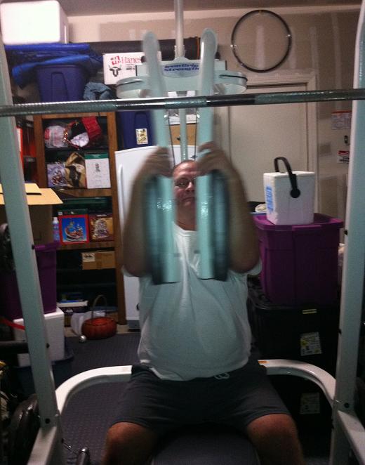 The weatherman predicts rain for the rest of this week so I will probably be stuck indoors to get my exercise anyways. I?ll be sticking to those exercises that I can do on my Smith Gym that wont cause too much pain to it. My choices are the following: hamstring curls, bench press, lateral pulls, bicep curls, tricep extensions and my favorite one, the butterfly.