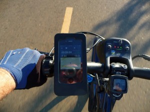 This last week I purchased a Wahoo Fitness Bike Sensor case for my iPhone. With this device I?m able to have it monitor my heart rate from a heart rate strap that I am wearing around my chest. Here is a picture of what the Bike Sensor case looks like mounted to my Optibike handlebar.
